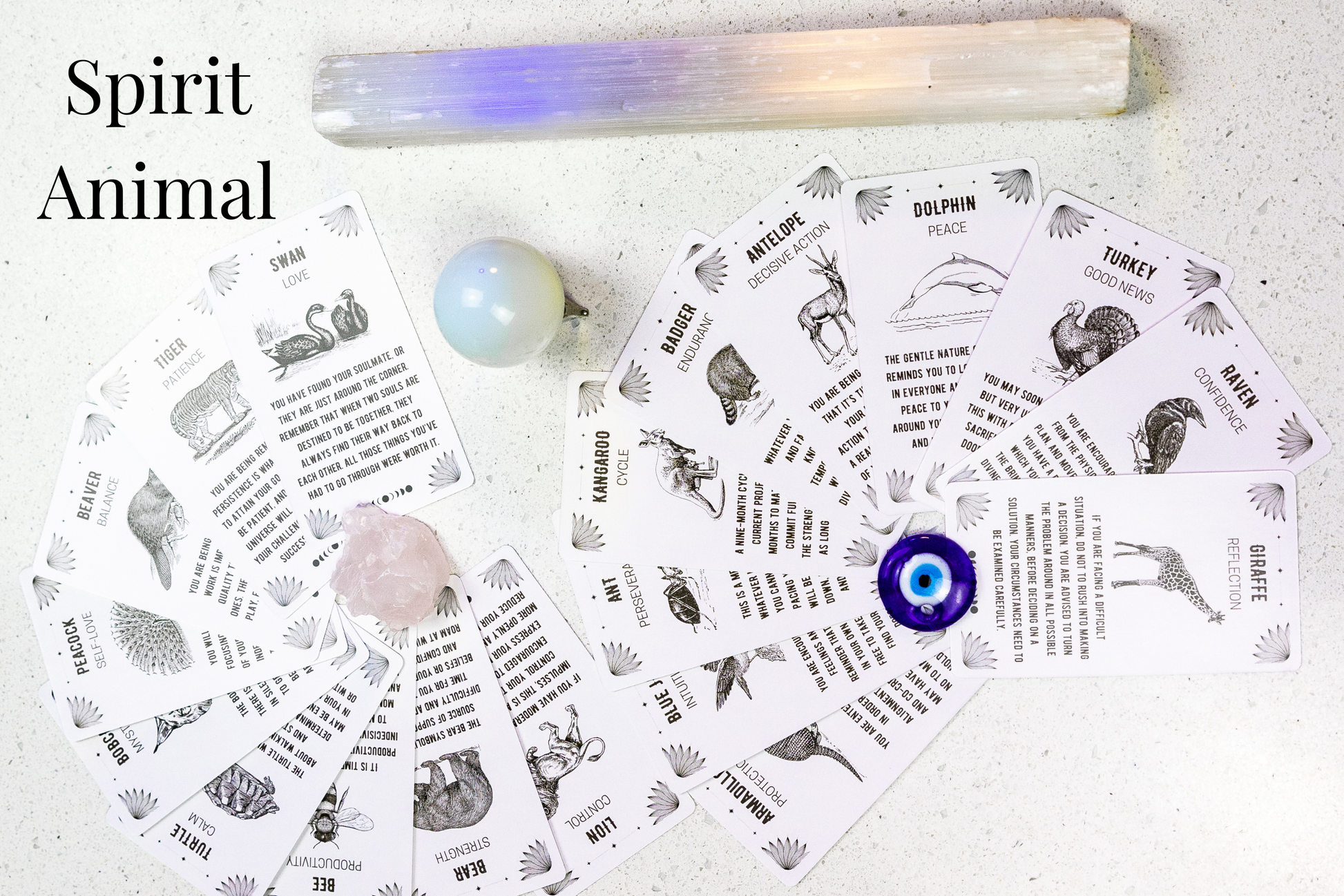 Spirit Animal Oracle -- This deck shows you the animal spirit that is currently supporting and leading you, as well as the lesson it brings. It's a good deck if you want quick clarity and an uplifting reading. It's good for receiving advice on what kind of energy is best for you to embody at this time.